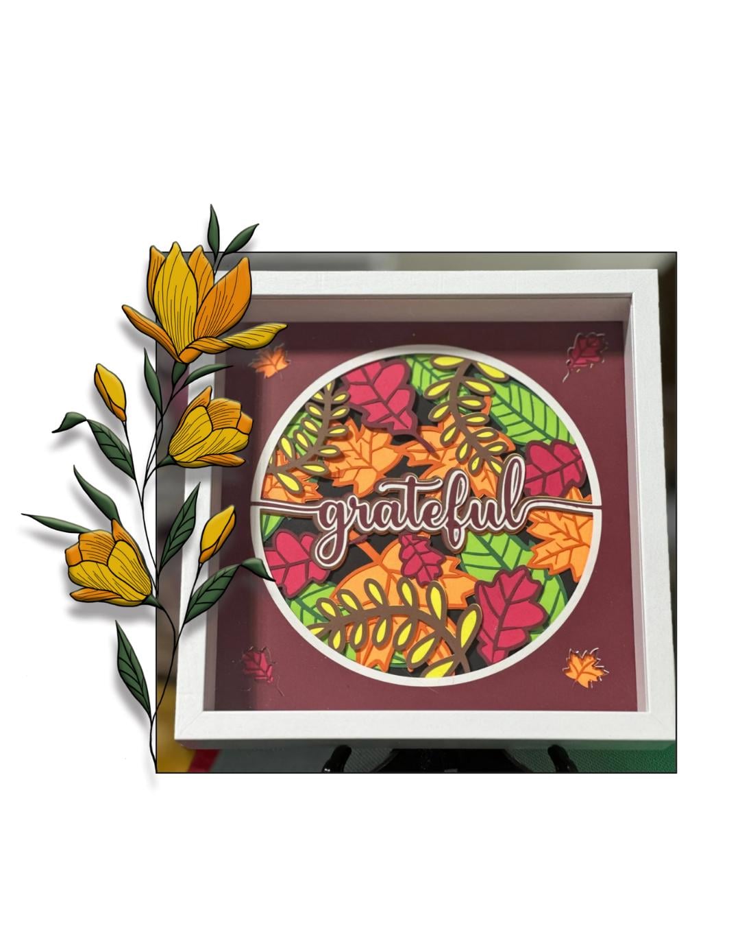 Bring the warmth of autumn into your home with this handcrafted “Grateful” Fall Shadowbox — a stunning 11-layer papercraft design that radiates seasonal beauty and heartfelt meaning.