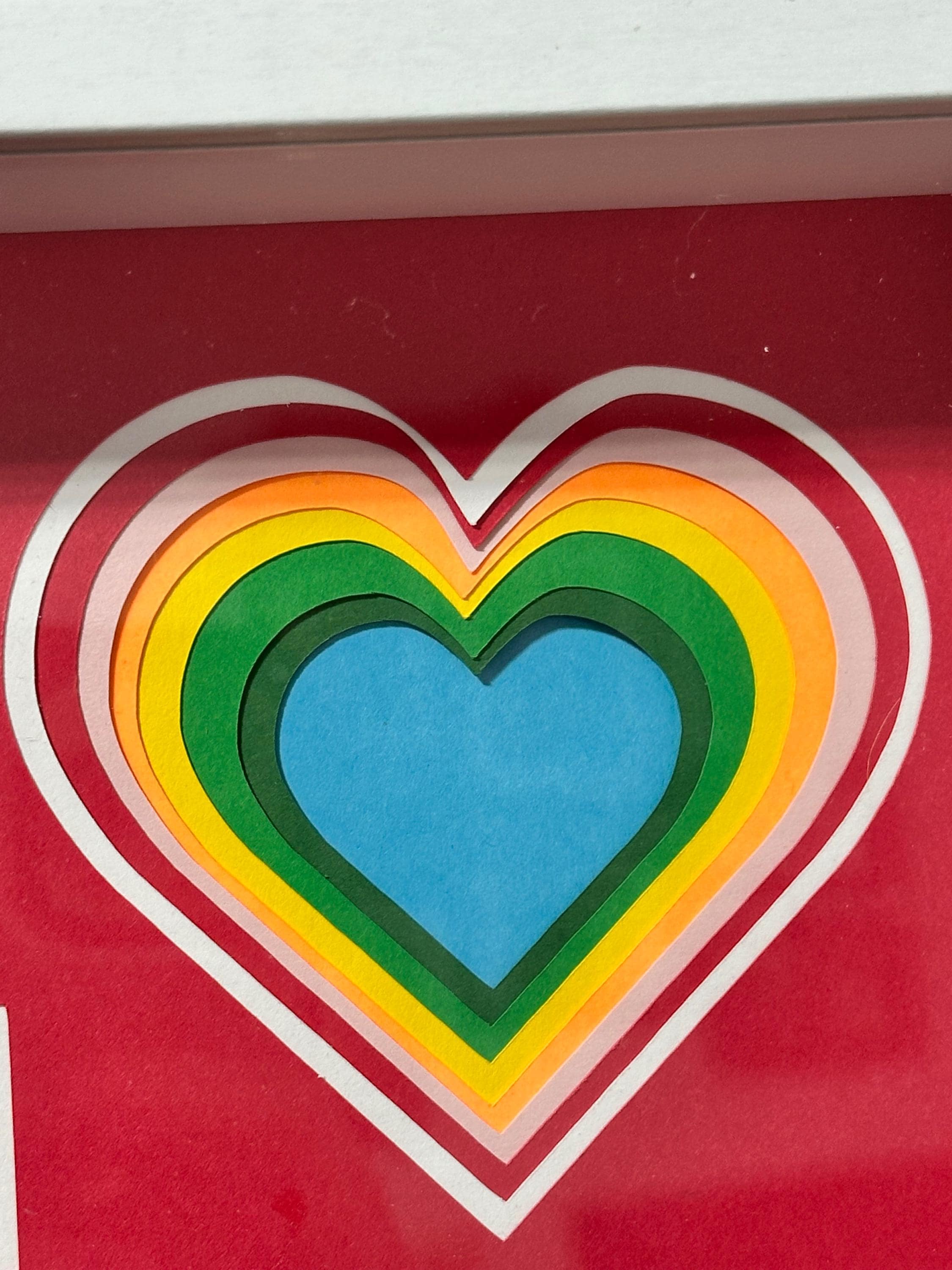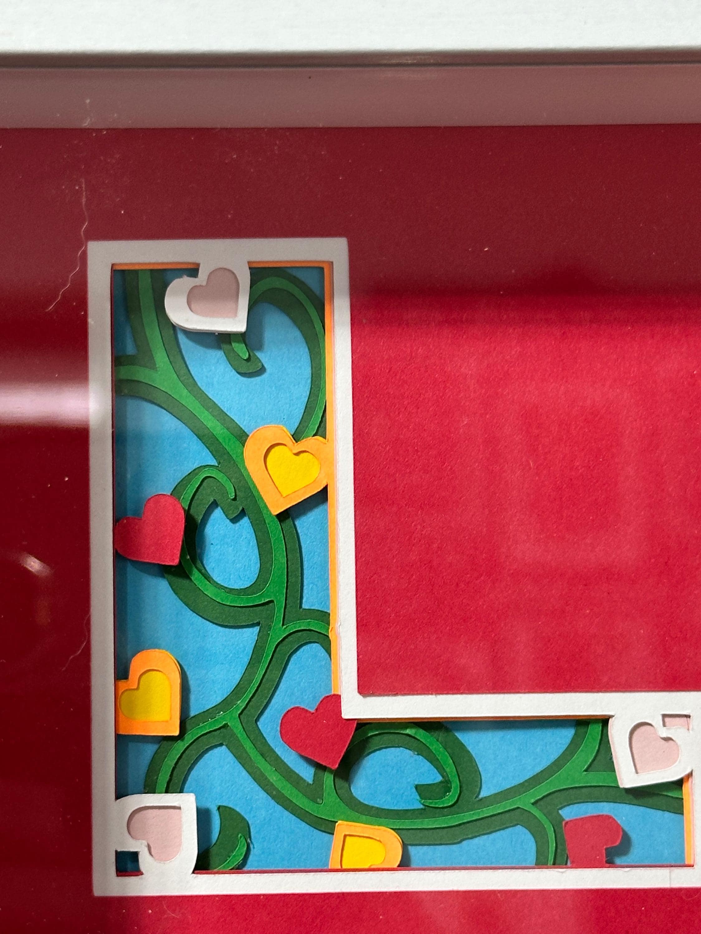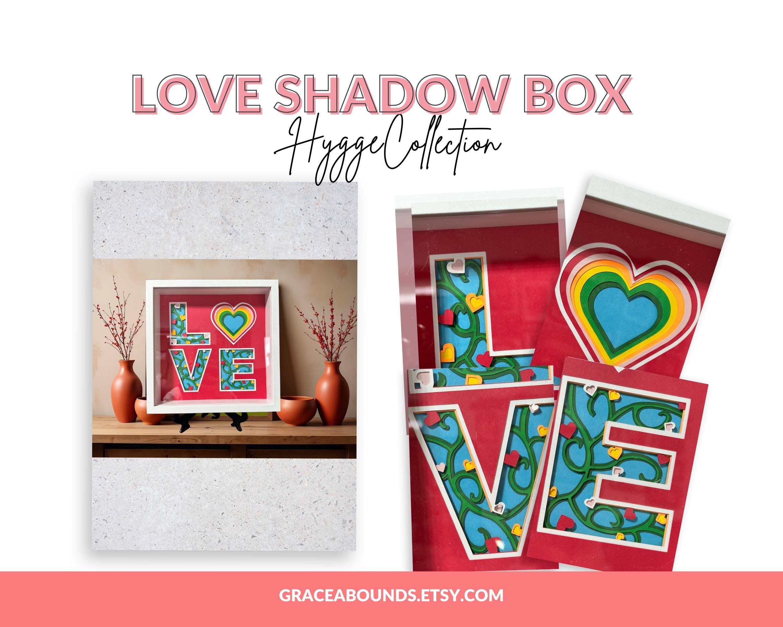 Celebrate the season of giving with this bright and cheerful Holiday LOVE Shadowbox, handcrafted with layered papercraft in vibrant patterns and framed in a sleek white shadowbox. Each letter of “LOVE” is stacked with colorful depth, creating a joyful 3D design that brings festive warmth to any room.