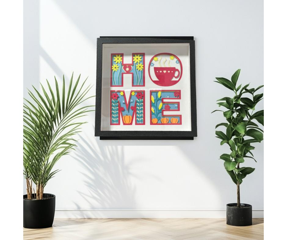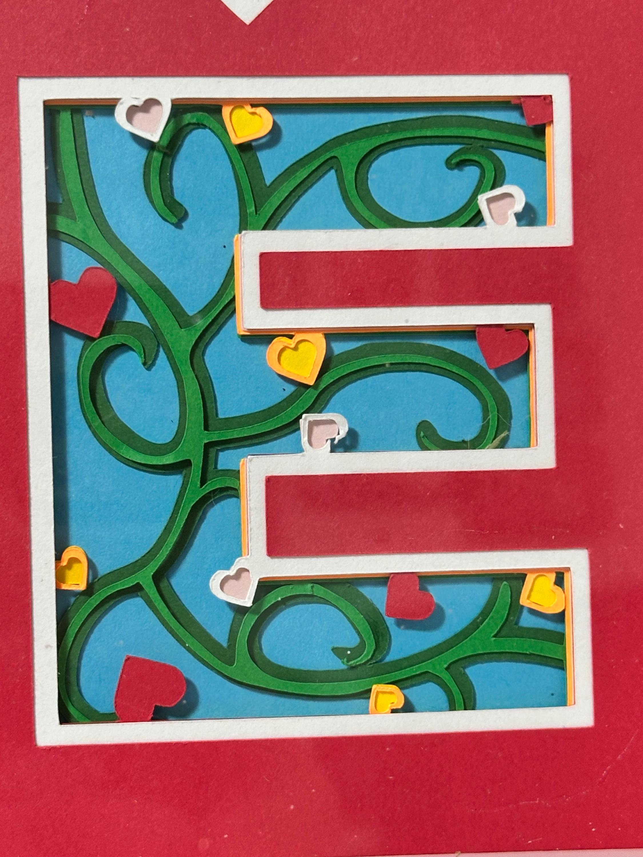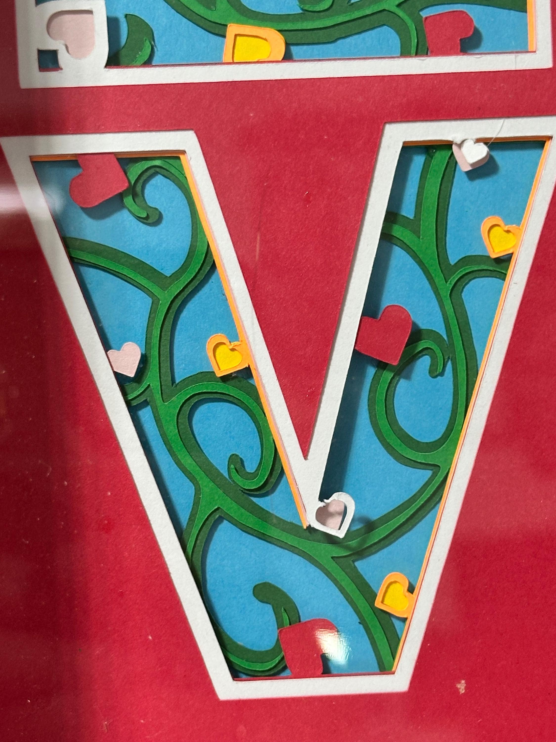 Celebrate the season of giving with this bright and cheerful Holiday LOVE Shadowbox, handcrafted with layered papercraft in vibrant patterns and framed in a sleek white shadowbox. Each letter of “LOVE” is stacked with colorful depth, creating a joyful 3D design that brings festive warmth to any room.